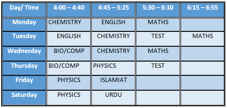 Time Table for Class X