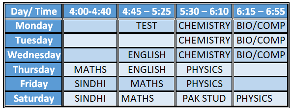 Time Table for Class IX